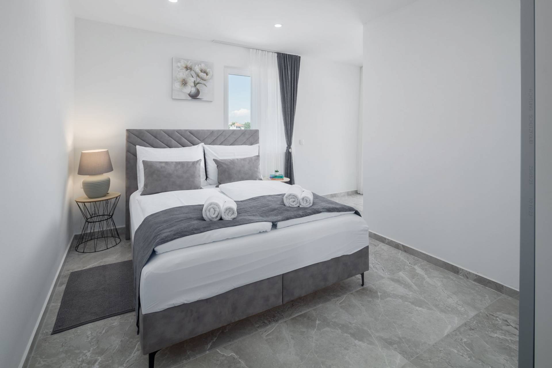 Schlafen Sie stilvoll in einem der vier großzügig geschnittenen Schlafzimmer, wo Exklusivität großgeschrieben wird. Jedes Zimmer verfügt über ein eigenes Badezimmer mit kompletter, luxuriöser Ausstattung, einen Balkon für ruhige, persönliche Momente und die Gewährleistung einer erholsamen Nachtruhe.